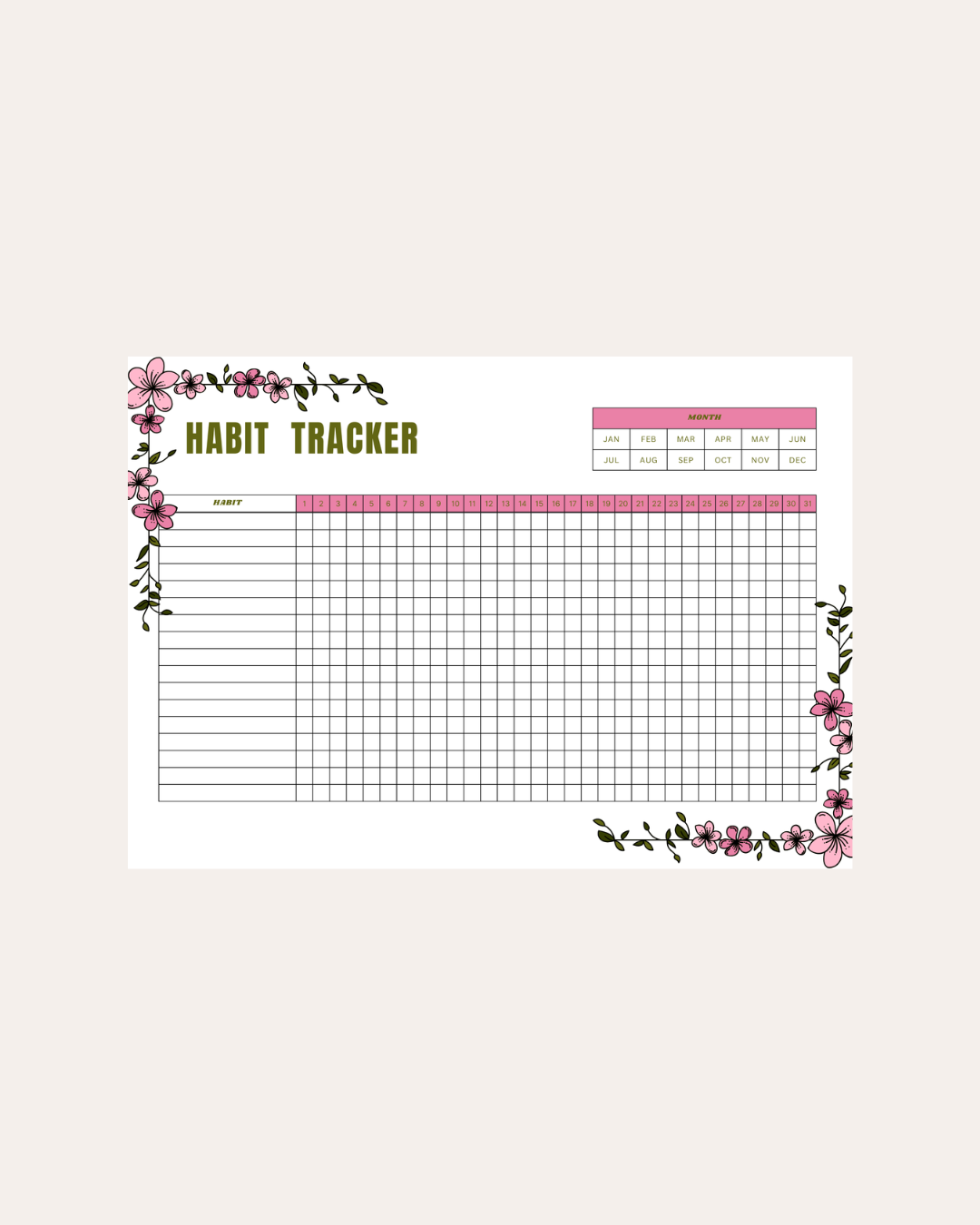 Perfect for tracking daily habits like self-care, water intake, exercise, reading, journaling, or mindfulness. Simply download the file, print it, and reuse it every month.
